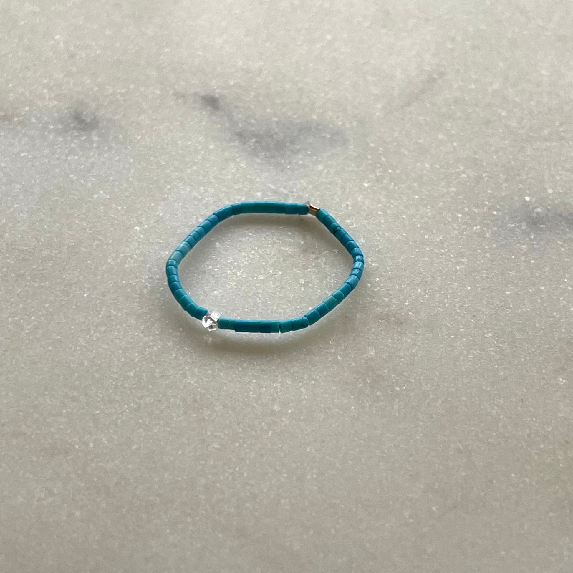 Super dainty turquoise and herkimer diamond beaded gemstone ring. Can be purchased with or without the herkimer diamond. Very lightweight and excellent for layering on the finger.